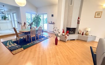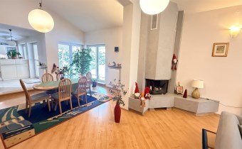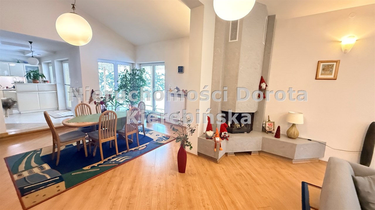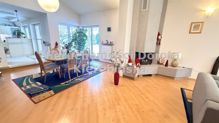 przestronny salon z kominkiem