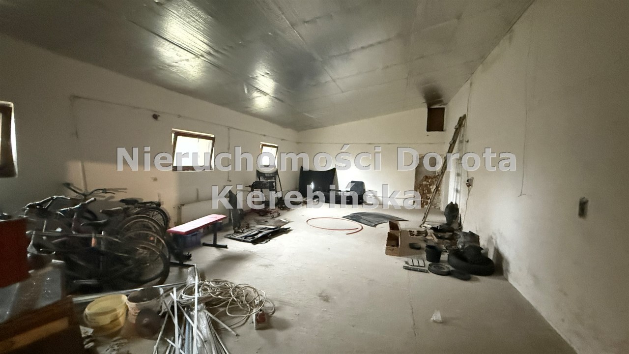 Za domem znajduje się hala o powierzchni 180 m² (nieogrzewana), która może służyć jako magazyn, warsztat lub przestrzeń do prowadzenia działalności gospodarczej.
