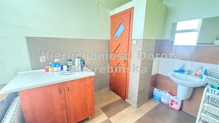 Budynek z 1965 roku jest ocieplony i utrzymany w bardzo dobrym stanie technicznym. Ogrzewanie gazowe zapewnia komfort i ekonomię użytkowania, a klimatyzacja gwarantuje wygodę przez cały rok. Dodatkowym atutem są zewnętrzne rolety antywłamaniowe oraz monitoring, które zwiększają poziom bezpieczeństwa.