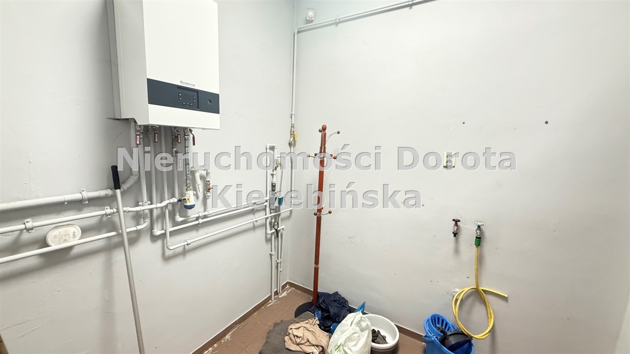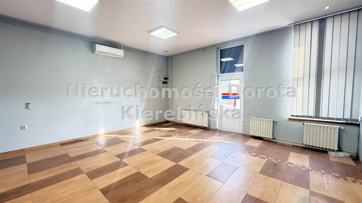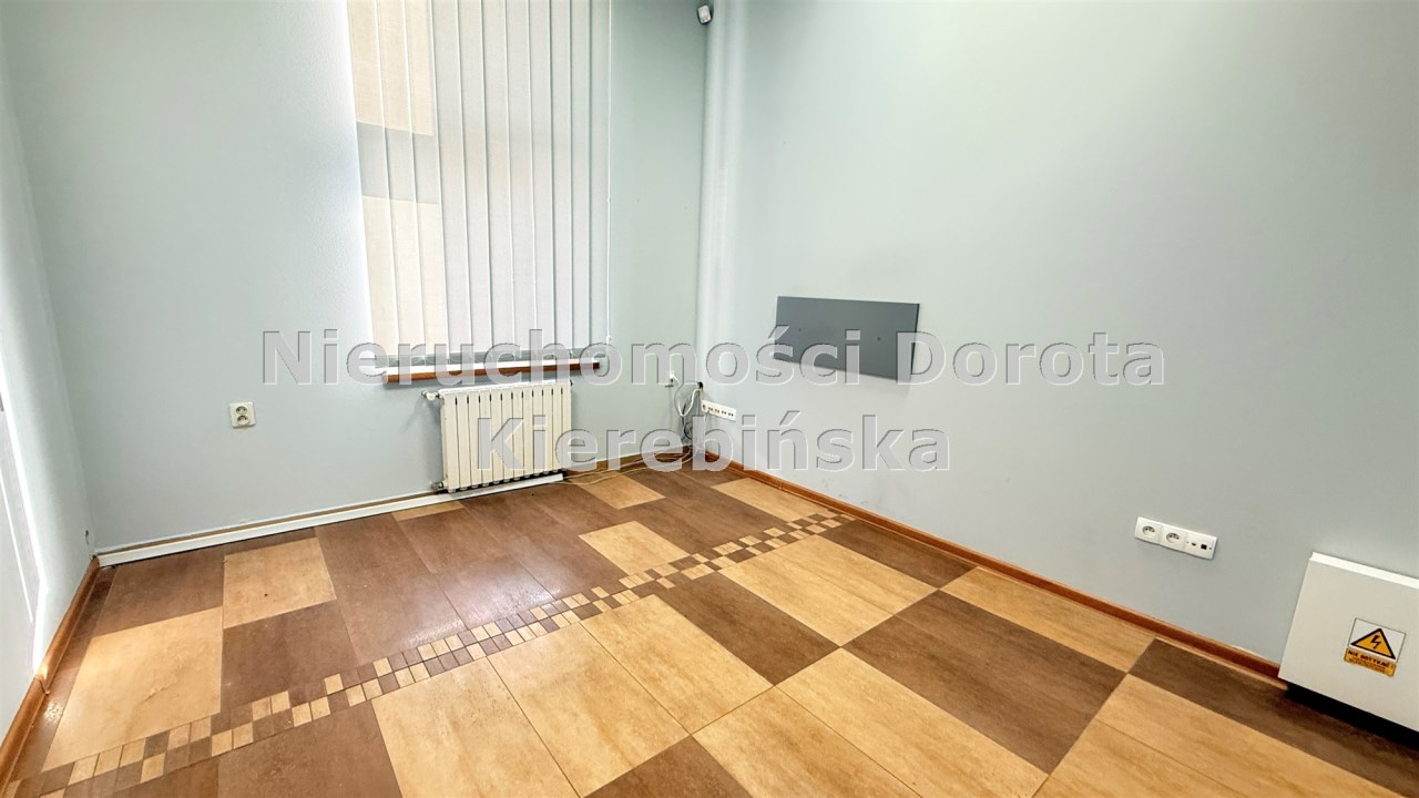 Lokal został funkcjonalnie podzielony ściankami działowymi na sześć pomieszczeń, w tym przestronną salę główną, dwa niezależne gabinety/pokoje, kotłownię oraz łazienkę. Taki układ daje szerokie możliwości aranżacyjne i pozwala dostosować przestrzeń do indywidualnych potrzeb prowadzonej działalności.