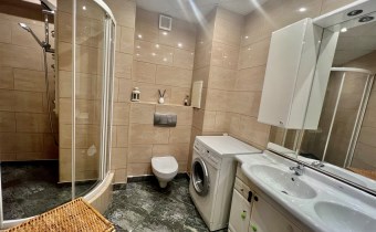 Mieszkanie mieści się na osiedlu przy Carrefour na II p. Posiada dwa osobne pokoje oraz duży salon połączony z tarasem typu loggia, duży przedpokój z bardzo pojemną szafą oraz łazienka w której mieści się prysznic z masażami oraz wanna z jacuzzi, umywalka, pralka oraz wc.